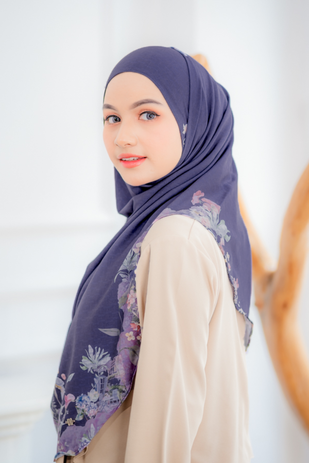 Pashmina instan dengan desain oval yang bisa menutup area dada & sebagian punggung.