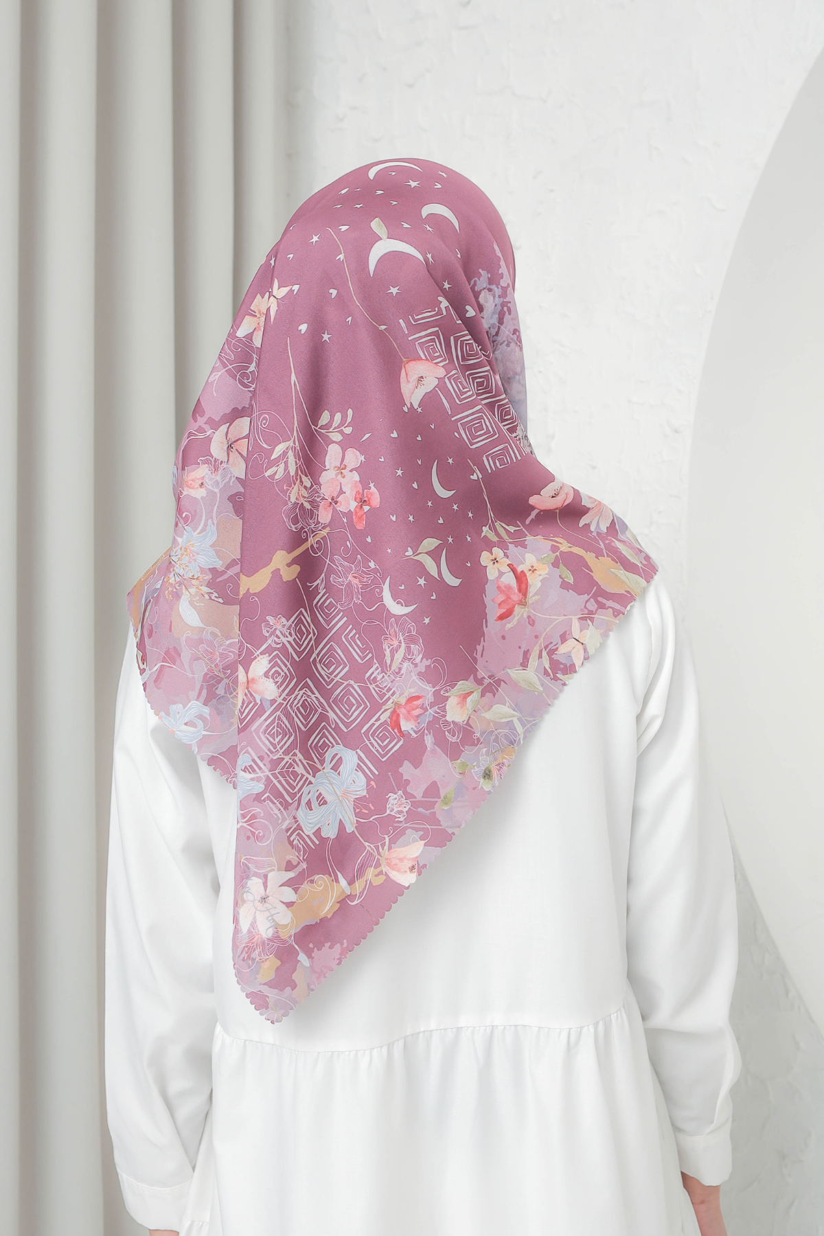 Hijab Segiempat Premium dengan motif exclusive yang terinspirasi dari Bunga Verbena. Bunga Verbena adalah bunga yang bersemi menyeruak indah diantara semak belukar. Bunga verbena mengajarkan kita bahwa kebahagiaan tidak selalu berada di tempat-tempat yang mewah, tetapi seringkali bersarang di antara hal- hal yang sederhana. The spark of joy, kebahagiaan kecil terkadang membuat hidup kita makin bermakna.