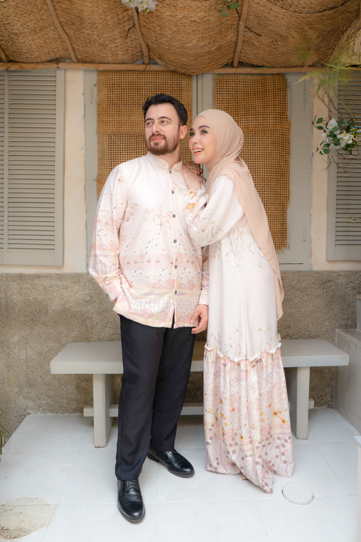 Rumah Senja menceritakan suasana rumah - rumah di kampung pedesaan, motif rumah dipadu dengan nuansa alam yang indah. Motif dan rumah dipadu nuansa bunga yang indah pada dress ibu dan anak perempuan. Dan motif rumah dipadu dengan motif abstrak untuk baju koko ayah dan anak laki-laki. Apabila dipakai bersama memberi kesan kompak dan harmonis penuh kebahagiaan.