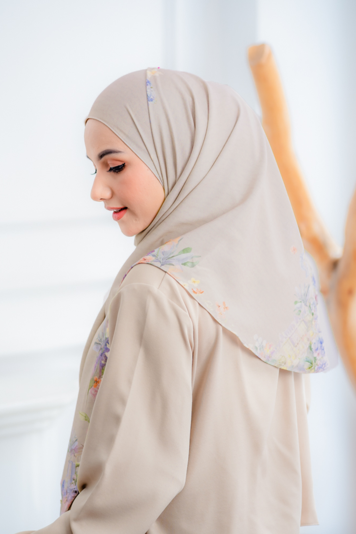 Pashmina instan dengan desain oval yang bisa menutup area dada & sebagian punggung.