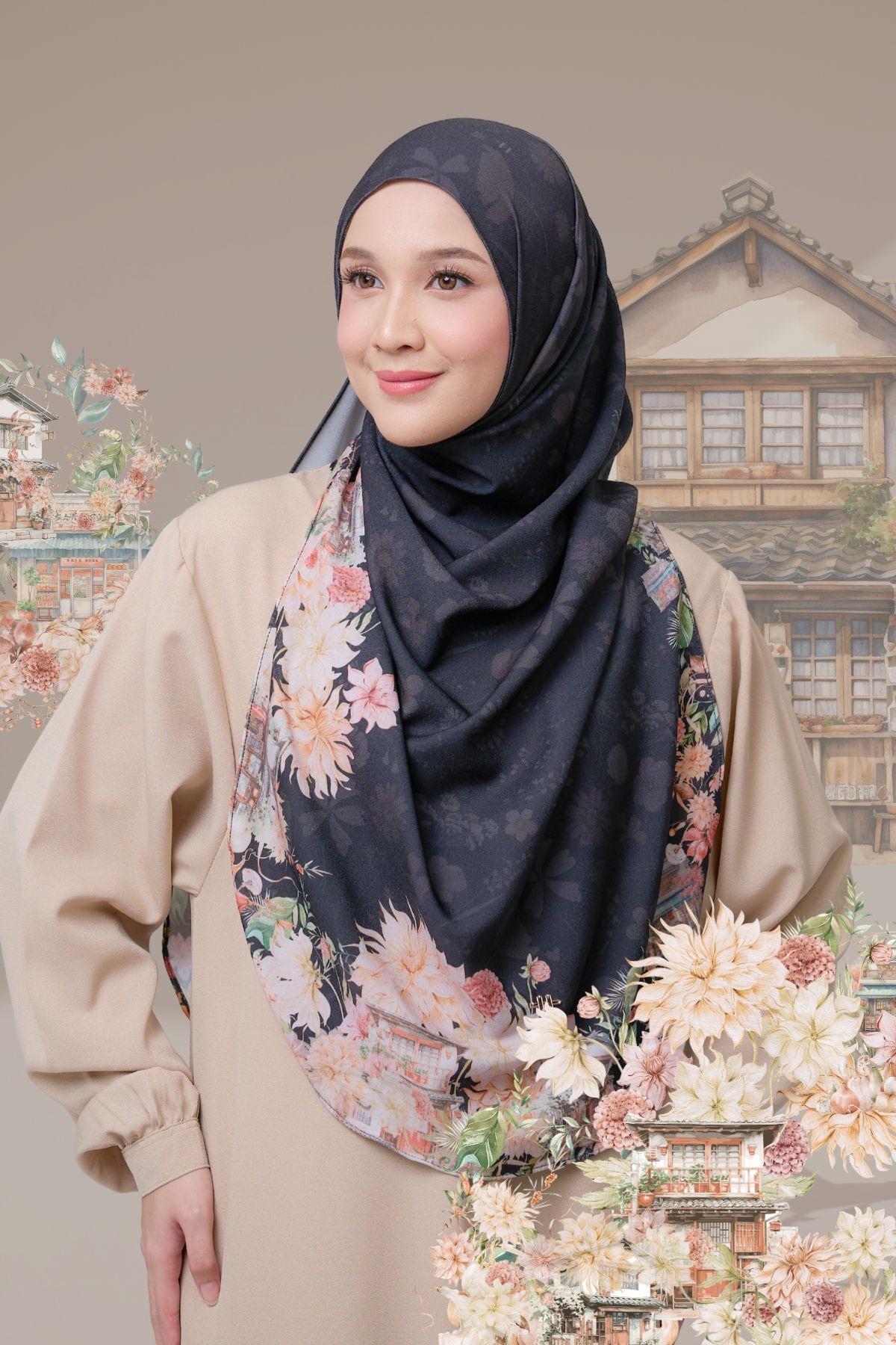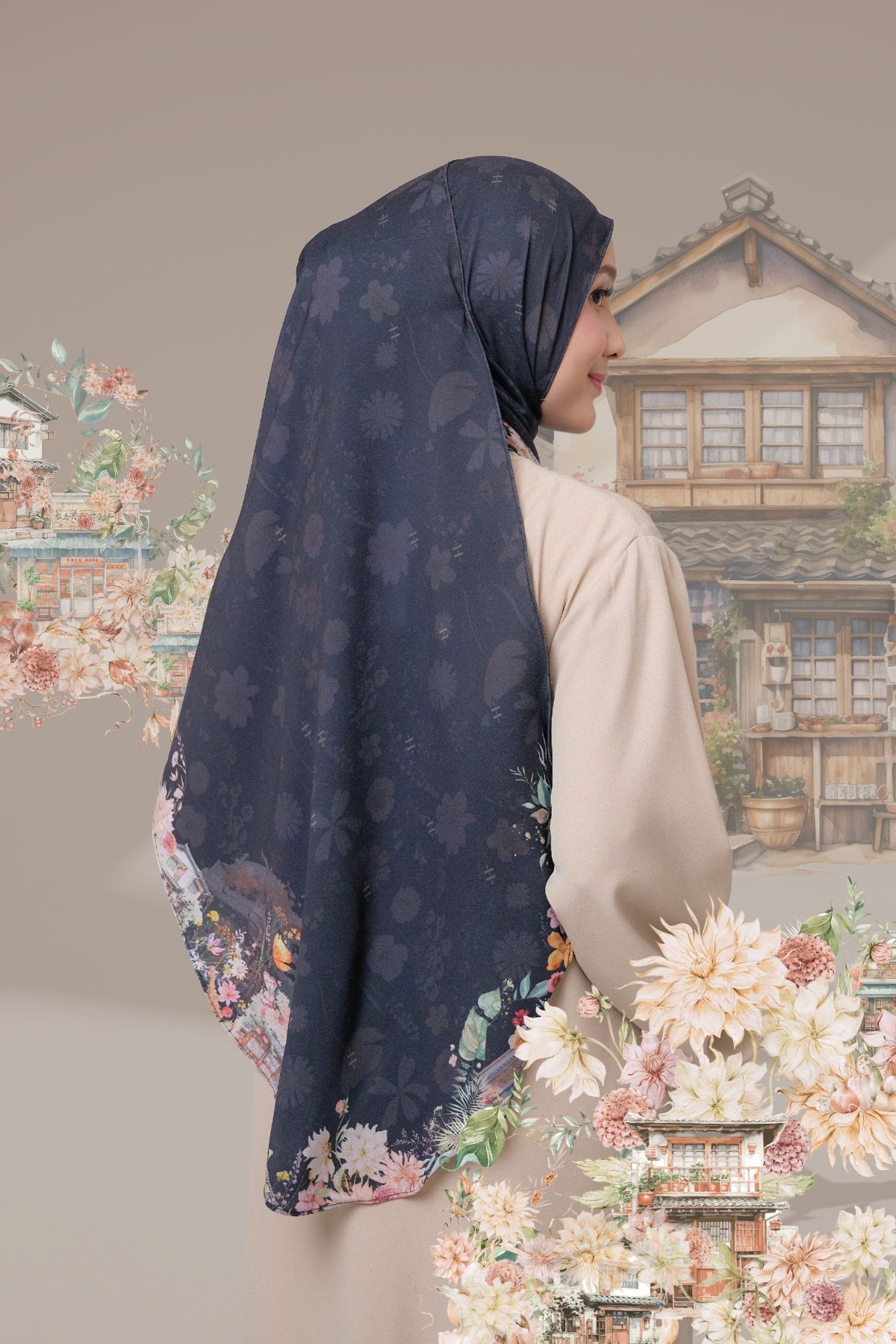 Dengan motif bunga yang cantik dipadu dengan motif “traditional house japan” yang klasik dan unik namun tetap memberikan nuansa hangat dengan keindahannya.