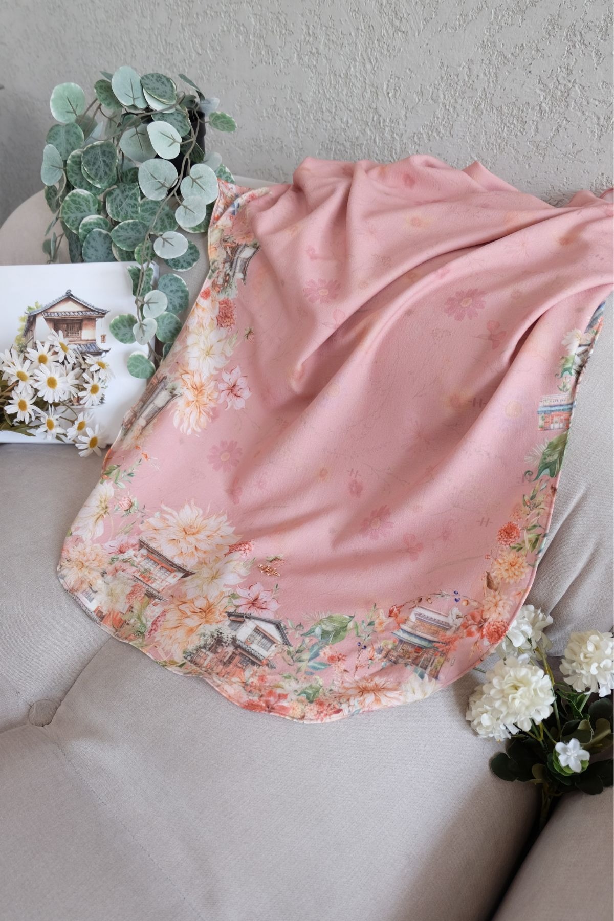 Dengan motif bunga yang cantik dipadu dengan motif “traditional house japan” yang klasik dan unik namun tetap memberikan nuansa hangat dengan keindahannya.