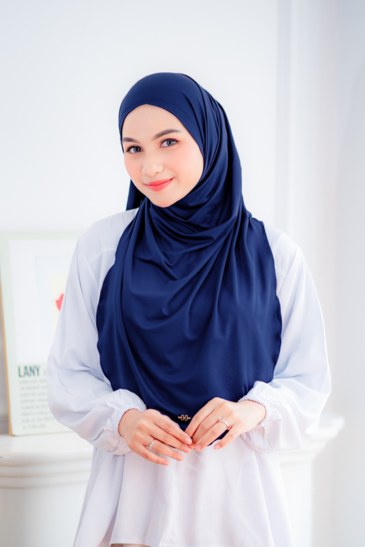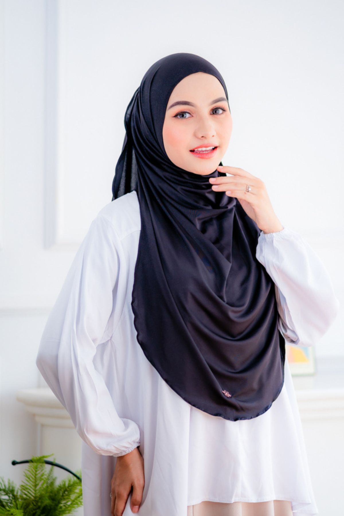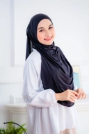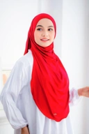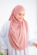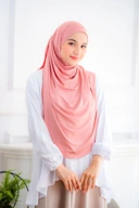 Pashmina instan dengan desain oval yang bisa menutup area dada & sebagian punggung.