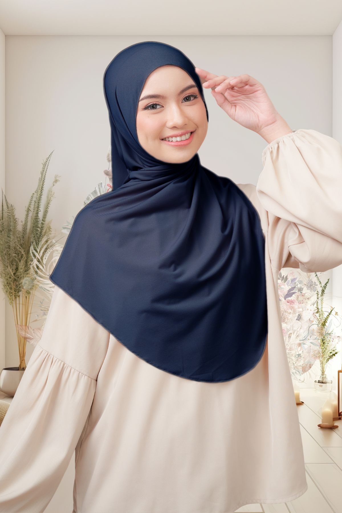 Tampil effortlessly cantik setiap hari dengan hijab instan berbahan jersey premium yang fleksibel dan stretch. 2 detik langsung cantik.