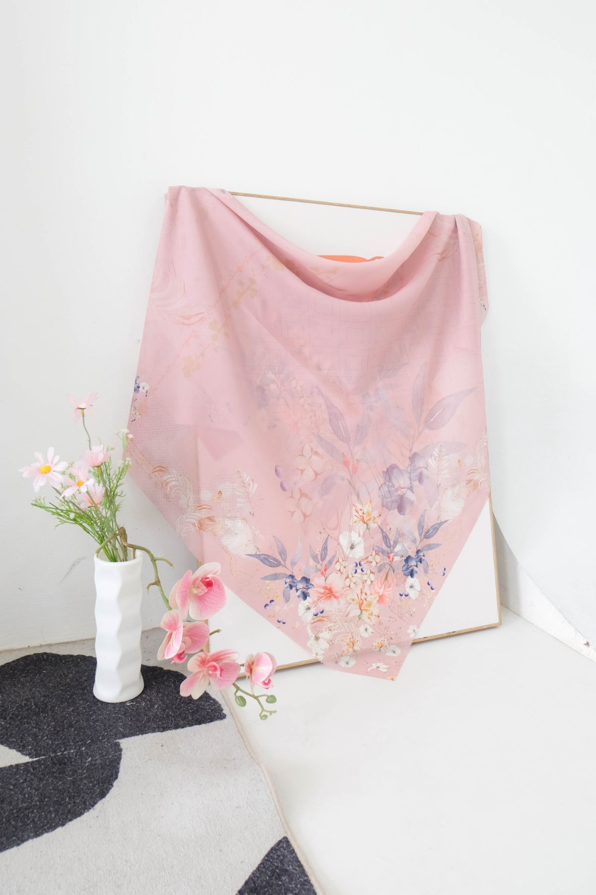 MIREA SCARF : Perpaduan bunga hibiscus, ranting gold, dan blueberry